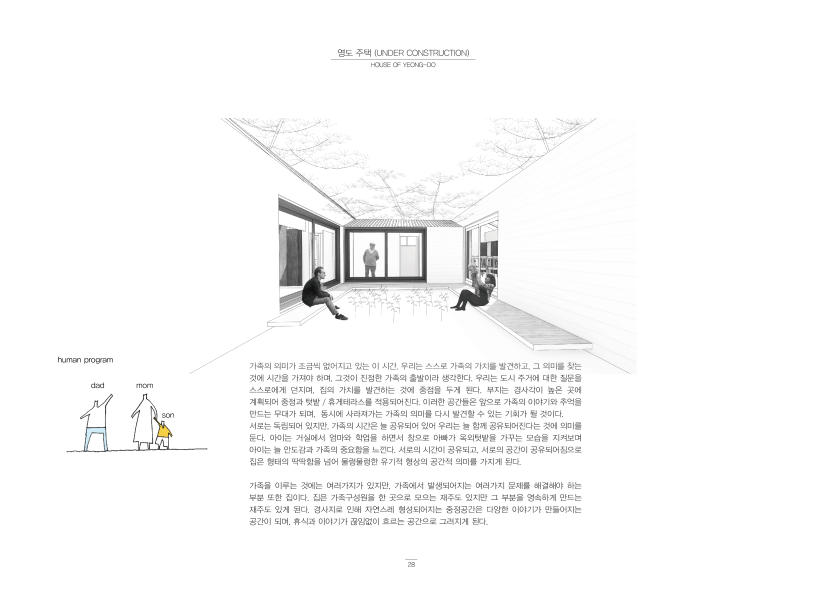 태어나 뒤집고 기면서부터 공간놀이가 시작된다. 평면적인 공간이 직립하여 서게 되면서 부터 입체적으로 바뀐다. 또한 사람들은 보고, 배우고, 느끼면서 공간에 어떠한 의미들을 부여하기도 한다. 어쩌면 건축은 본질적이면서도 추상적인 속성을 지닌 인간 그 자체이다. 말로는 다 표현할 수 없지만 우리몸과 마음으로 느껴지는 좋은 건축공간을 만들고자 한다.